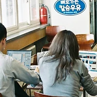 다른 한 쪽 구석에 놓여있는 냉장고입니다. 냉장고 한쪽에는 차와 우유, 요쿠르트 등의 유제품과 냉장식품들이 가득합니다. 다른 한 쪽에는 쥬스와 각종 탄산음료 등이 한가득 있습니다. 별 절차 없이 그냥 가져다 먹으면 된답니다. 사발면-제육볶음-순두부-김치찌개-짜장면의 싸이클로 3년을 돌아갔던 제 직장생활 시절 점심 식단이 마치 미개인의 그것처럼 느껴지네요.